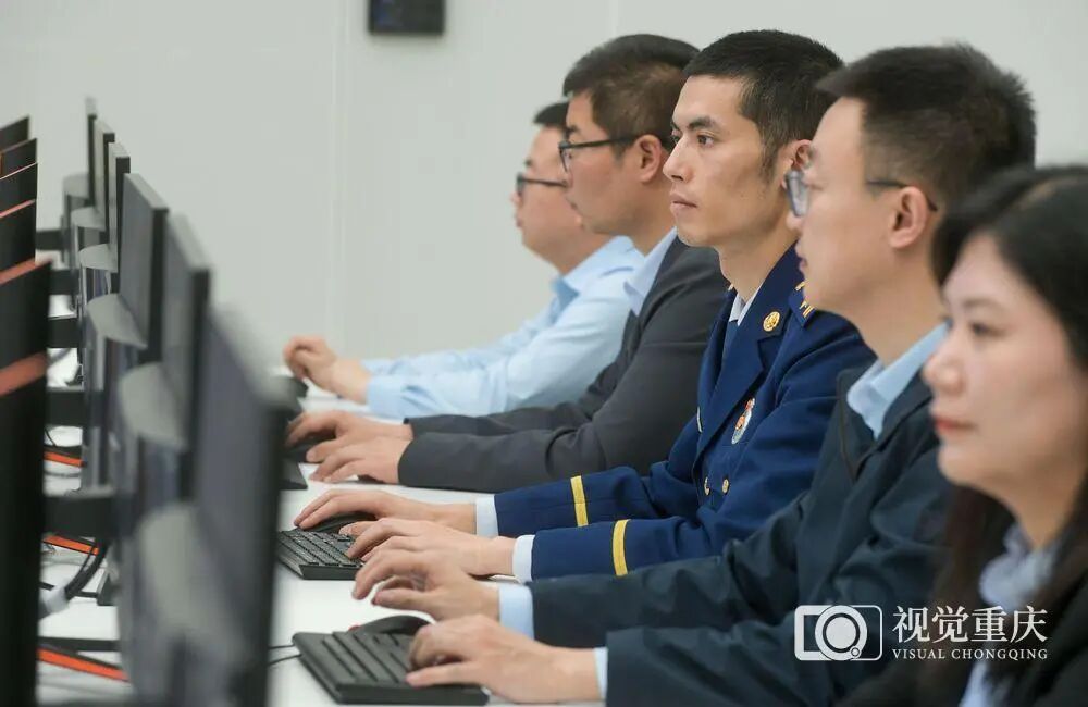 ▲位于重庆市两江新区的重庆三级数字化城市运行和治理中心大厅,工作人员在后台运维三级治理中心。记者 张锦辉 摄/视觉重庆