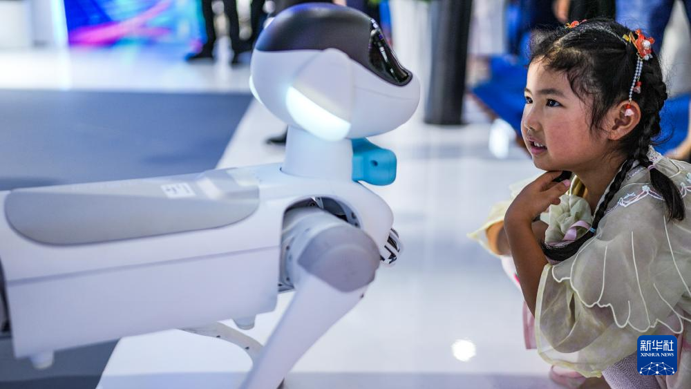 ▲8月28日,小朋友在2025中国国际大数据产业博览会上观看机器狗。记者 陶亮 摄/新华社