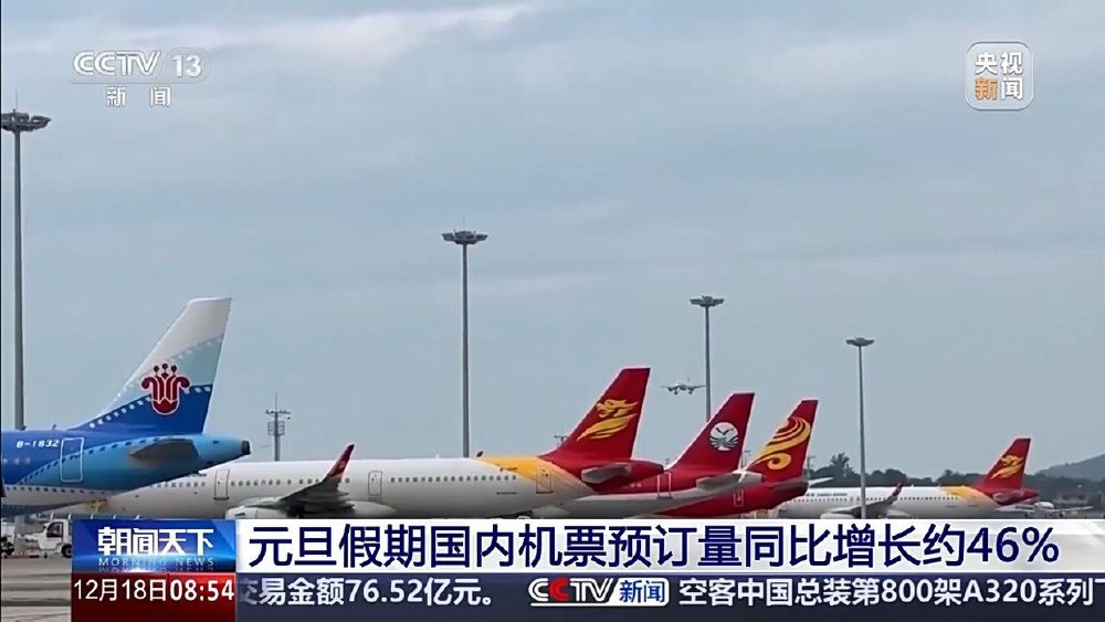 元旦假期国内机票预订量同比增长约46%