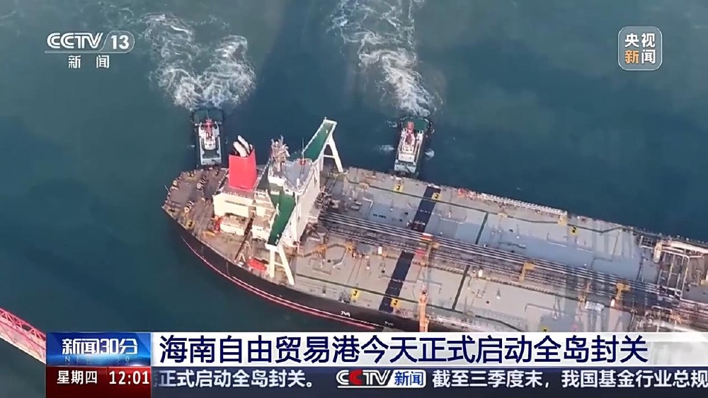 总台央视记者 孙艳:这里是海南自贸港“一线”放开的主通道洋浦港,我身后一艘搭载着17.9万吨石化原辅料的货船正缓缓靠港,这也是海南自贸港封关运作后的第一批“零关税”进口产品,海关快速验行,节省通关时间近4小时。