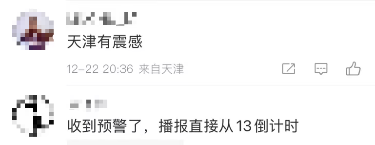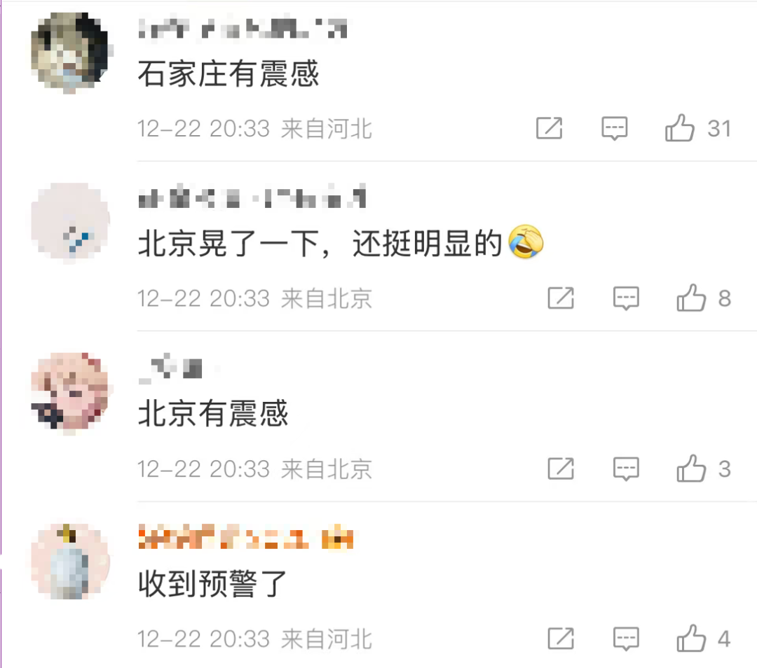 河北、北京、天津等地不少网友表示有震感:
