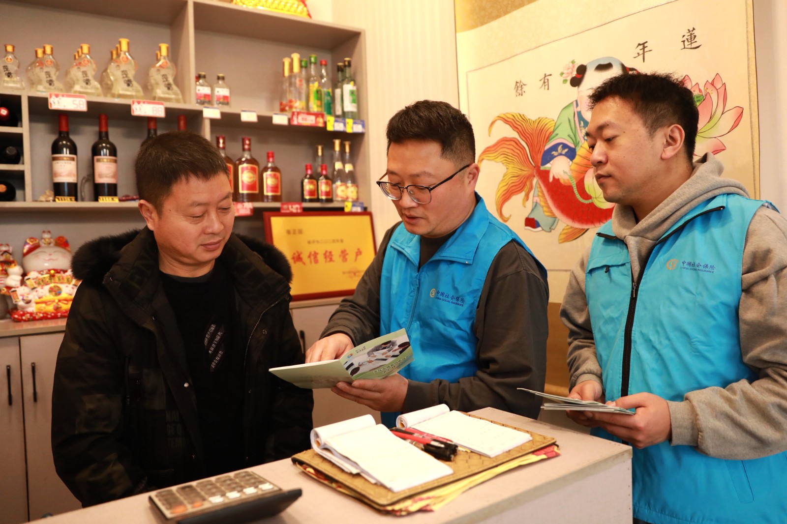 乌杨街道便民服务中心的工作人员给张国政宣传“退捕渔民创业担保贷款”等政策。赵军 摄