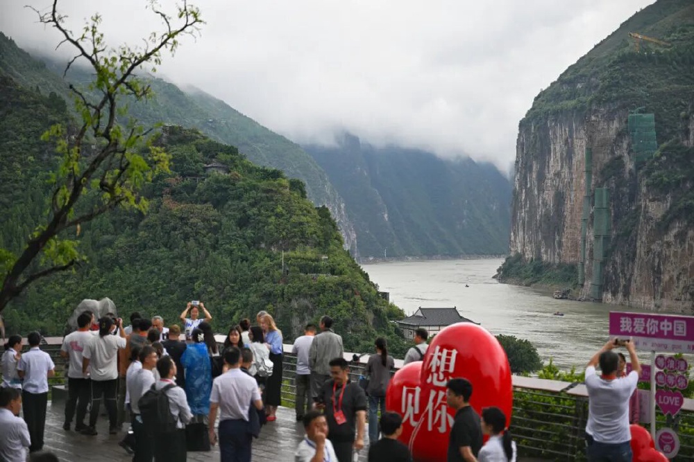 2025年9月19日,重庆奉节白帝城·瞿塘峡景区,夔门观景台上众多游客在拍照打卡。记者 谢智强 摄/视觉重庆