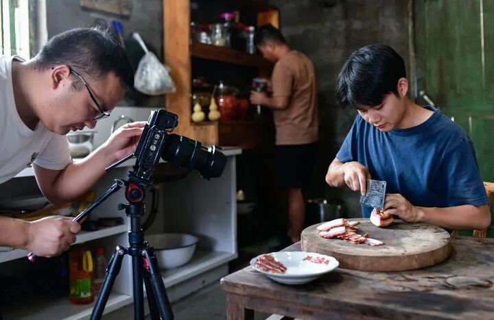 ▲在贵州铜仁陈家寨村,自媒体创作者在拍摄短视频。记者 杨文斌 摄/新华社