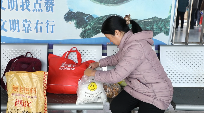 2月23日,春节假期的最后一天,记者在忠县汽车总站看到,候车大厅里人来人往。旅客们提着大大小小的行李箱、背着五颜六色的背包,有序地排队安检、候车。在熙熙攘攘的人群中,一个个鼓鼓的行囊格外引人注目,里面装的不仅是生活用品,更多的是浓浓的家乡味。腊肉、柚子、柑橘、酥肉……这些老家的土特产,成了返程行囊里的“标配”。