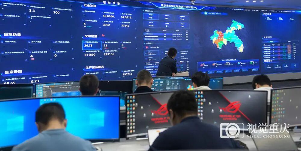 ▲市大数据应用发展管理局,工作人员在后台运维三级数字化城市运行和治理中心。记者 张锦辉摄/视觉重庆