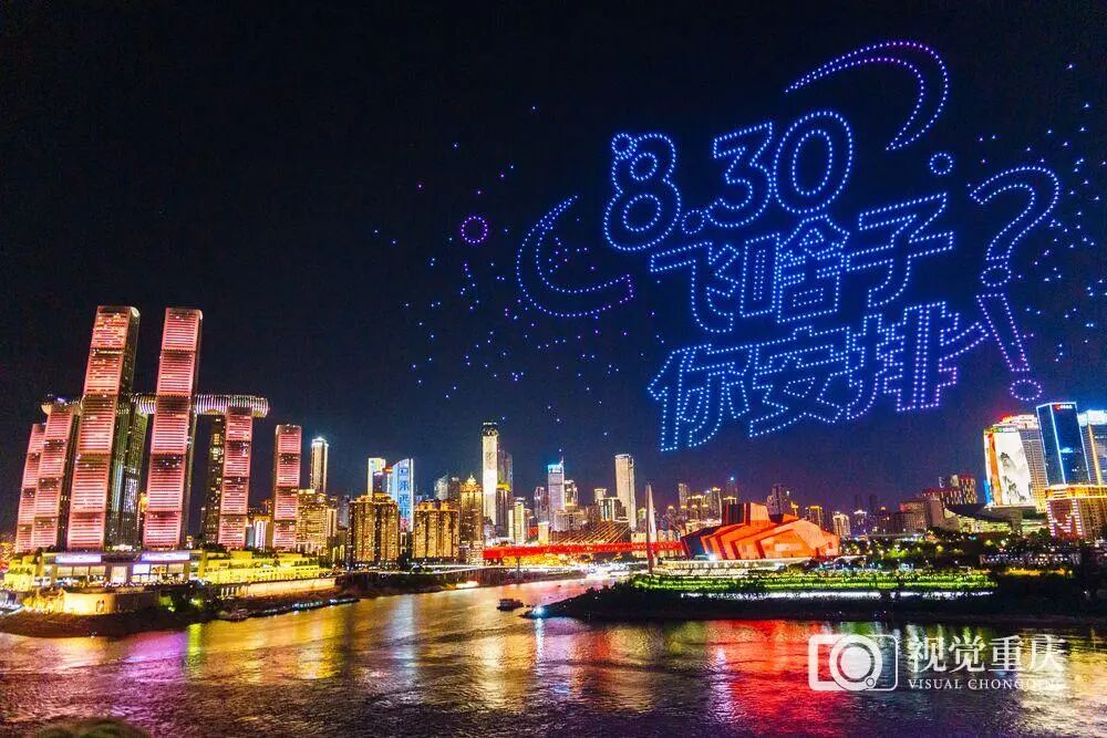 ▲2025年8月16日,重庆南岸区南滨路,精彩的无人机表演。记者 李雨恒 摄/视觉重庆