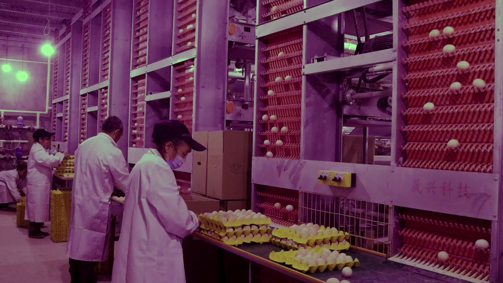 鸡蛋运往分拣区。拍摄:吴建华