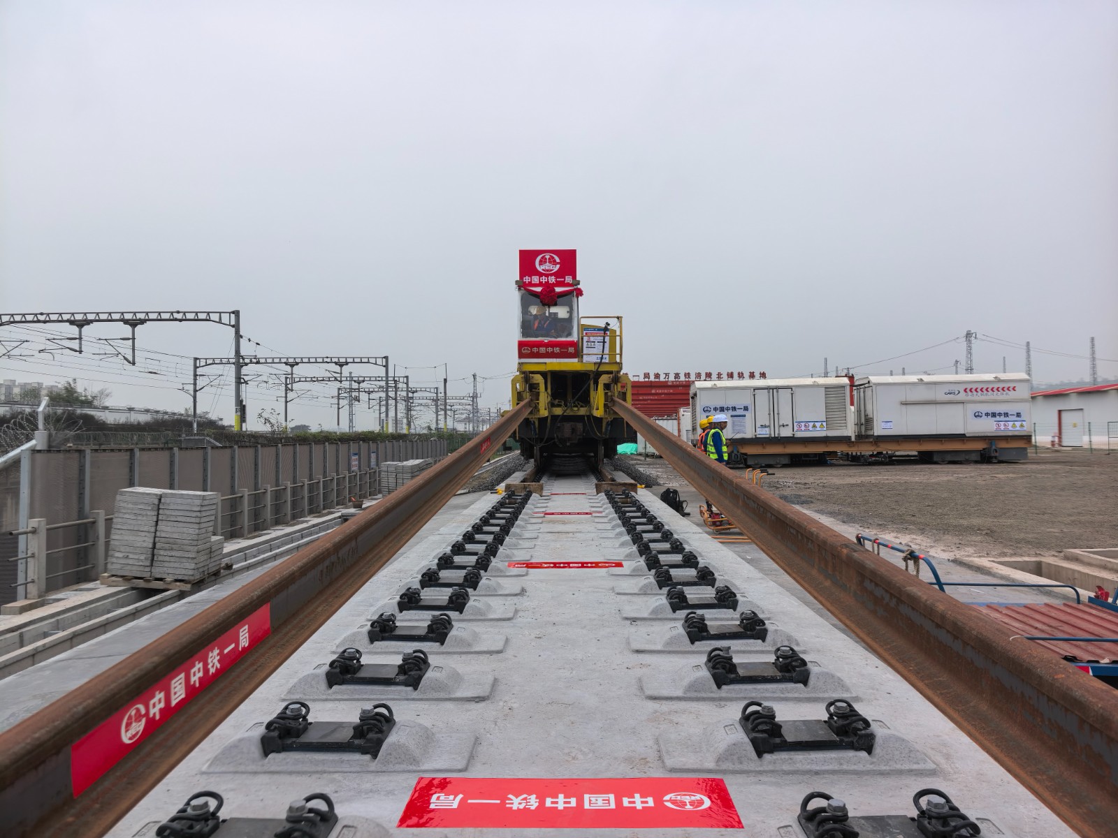 记者从渝万铁路有限责任公司获悉,2026年4月3日8时58分,在重庆市涪陵区涪陵北站施工现场,首对500米长钢轨从新型多功能长钢轨牵引车上稳稳铺下,标志着新建重庆至万州高速铁路(以下简称渝万高铁)全线铺轨工程正式启动。