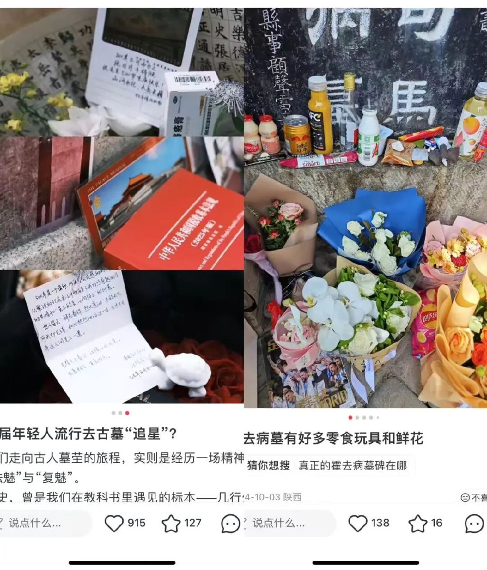 给霍去病带去少年爱吃的零食,为辛弃疾献上“东风”导弹的模型,在周瑜墓前吹起小曲……这些看似轻松的表达背后,是对历史的深度共情。年轻人用现代视角贴近历史,让厚重文化卸下距离感,把古人当作可以倾诉的朋友,正是这种平视,让严肃的历史变得温暖可触。