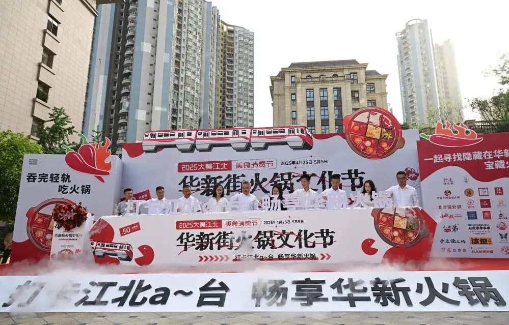 2025年4月23日,在重庆市华新街,嘉宾共同启动火锅文化节活动。记者 陈诚 摄/新华社