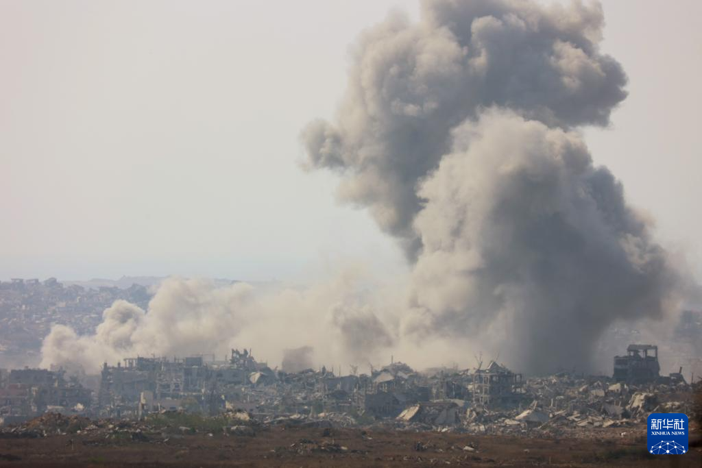 这是7月10日从加沙边境以色列一侧拍摄的加沙地带遭空袭后升起浓烟。新华社发(吉尔·科恩·马根摄)