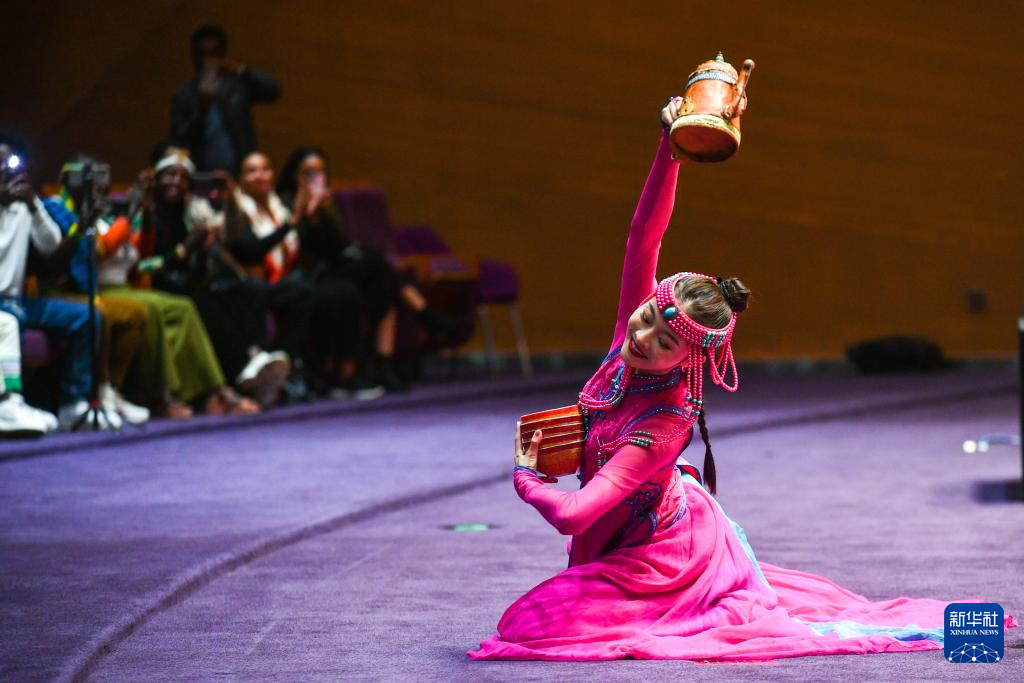 7月13日,中国内蒙古自治区的艺术家在埃塞俄比亚首都亚的斯亚贝巴演出。新华社发(迈克尔·特韦尔德摄)