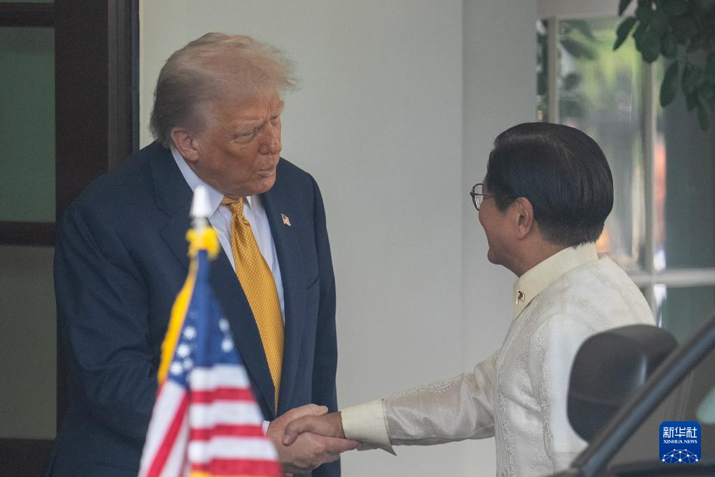7月22日,美国总统特朗普(左)在华盛顿白宫欢迎到访的菲律宾总统马科斯。新华社记者 胡友松 摄