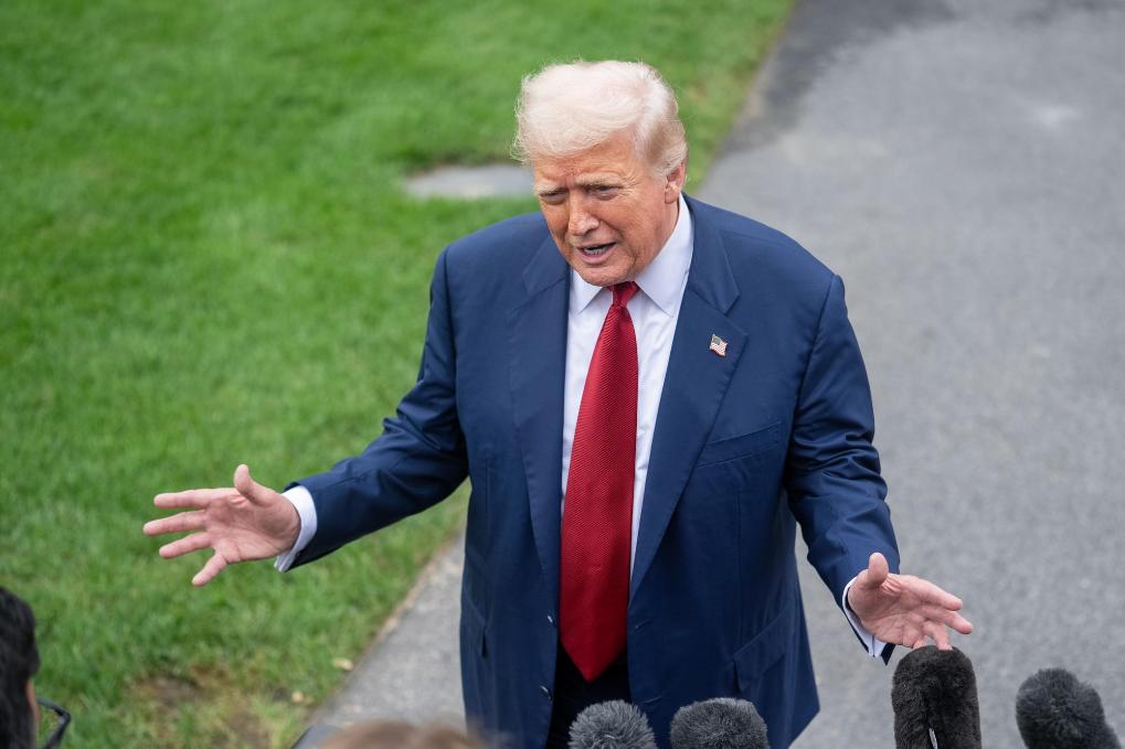 8月1日,在美国首都华盛顿白宫,美国总统特朗普回答提问。新华社记者胡友松摄