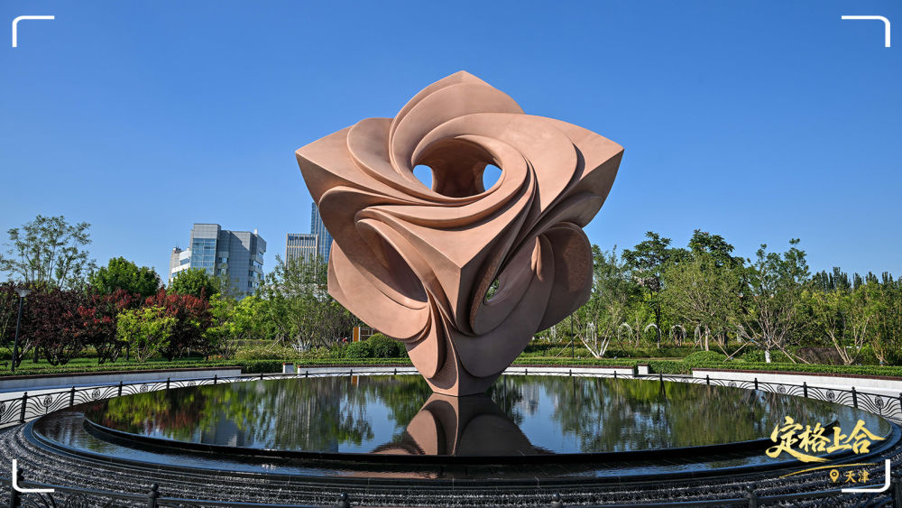 天津市河西区一街角公园拍摄的“友谊之花”雕塑。