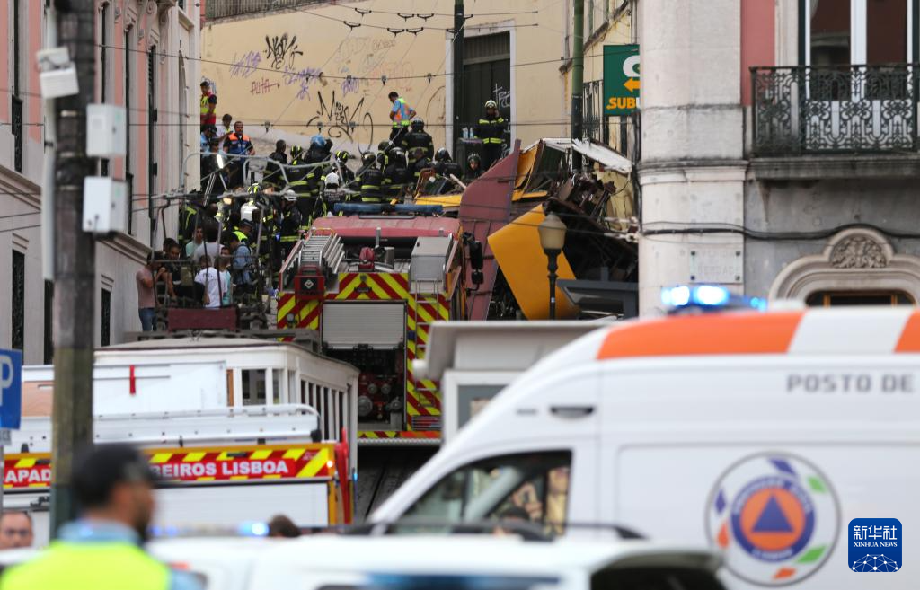9月3日,救援人员在葡萄牙里斯本有轨升降缆车事故现场工作。新华社记者 荀伟 摄