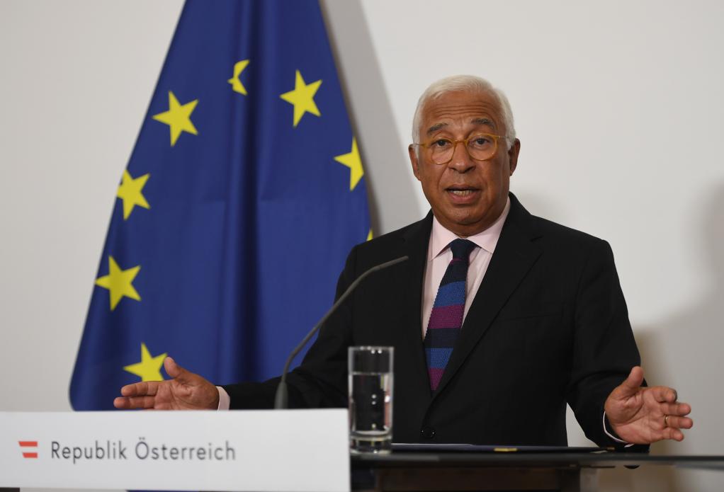 9月3日,在奥地利首都维也纳,到访的欧洲理事会主席科斯塔和奥地利总理施托克尔(未在画面中)出席新闻发布会。新华社记者贺灿铃摄