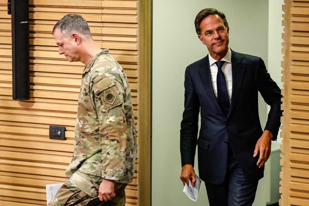9月12日,北约秘书长吕特(右)和北约欧洲盟军最高司令亚力克苏斯·格林克维奇在位于比利时布鲁塞尔的北约总部出席新闻发布会。新华社/法新