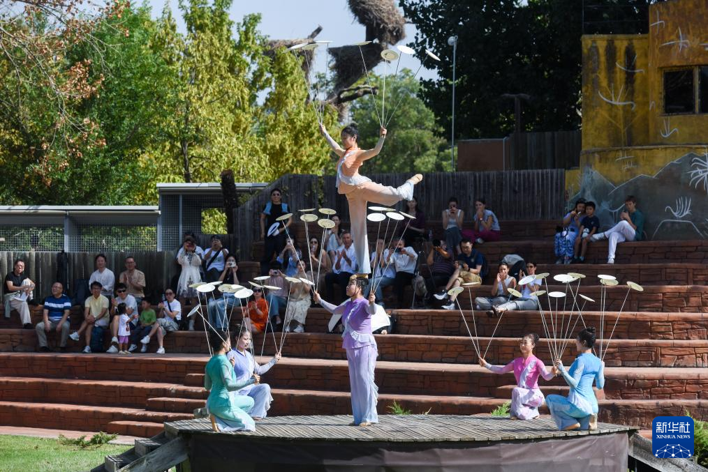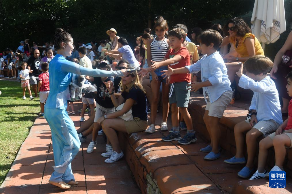9月20日,在西班牙马德里动物园,来自深圳的艺术家们为观众献上杂技表演。新华社发(古斯塔沃·巴连特摄)