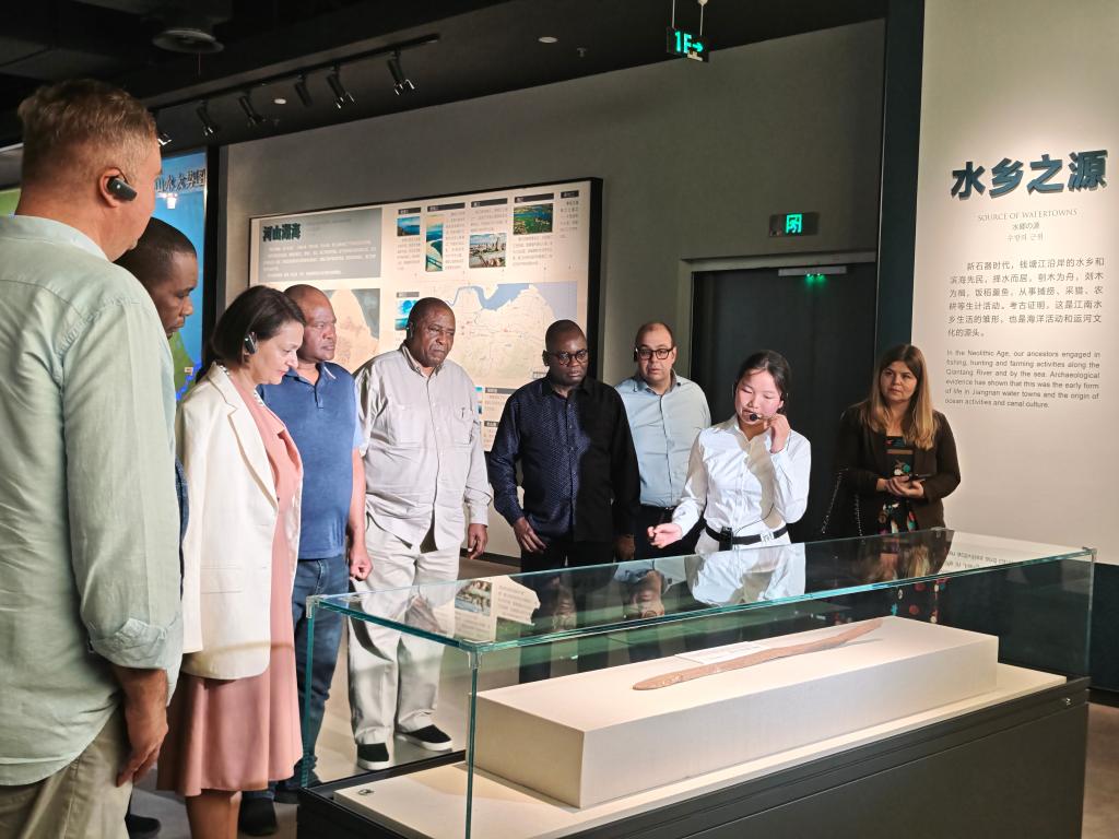 10月16日,使节团在浙东运河博物馆参访。新华社记者 陆君钰 摄