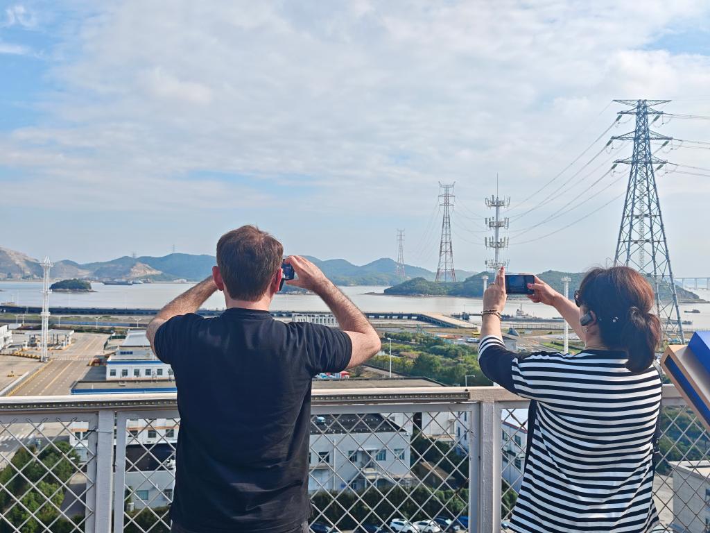 10月17日,使节团在宁波舟山港参访。新华社记者 陆君钰 摄
