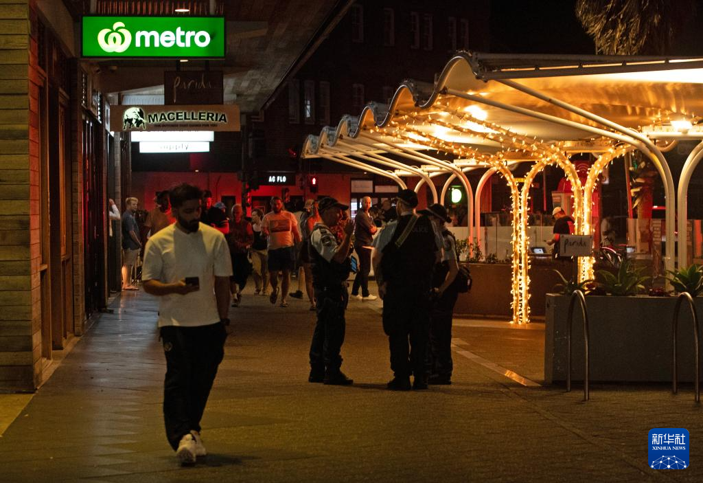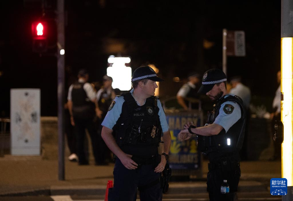 12月14日,在澳大利亚悉尼,警察在邦迪滩枪击事件附近区域执勤。新华社记者 马平 摄