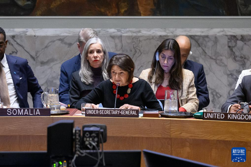 1月5日,在位于纽约的联合国总部,联合国副秘书长迪卡洛宣读联合国秘书长古特雷斯的讲话。新华社发(联合国供图/洛伊·费利佩摄)