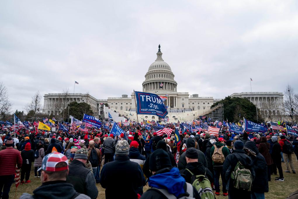 2021年1月6日,在美国首都华盛顿的国会大厦前,特朗普的支持者举行示威游行。新华社记者刘杰摄