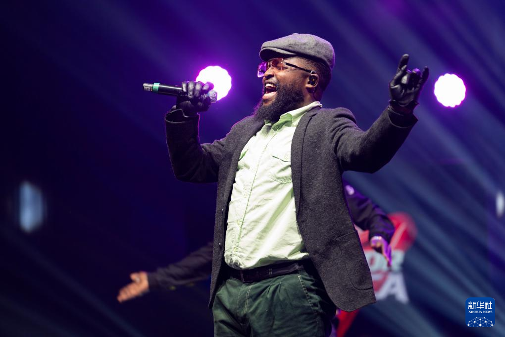 2025年12月29日,在肯尼亚内罗毕举行的音乐选秀节目《唱响非洲》决赛录制现场,肯尼亚歌手法努埃尔在演唱。新华社记者 杨光 摄