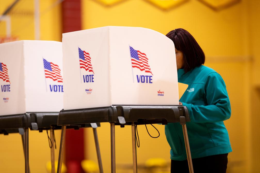 2024年3月5日,选民在美国弗吉尼亚州彼得斯堡的投票点参与投票。新华社发(温斯特德·巴恩斯摄)