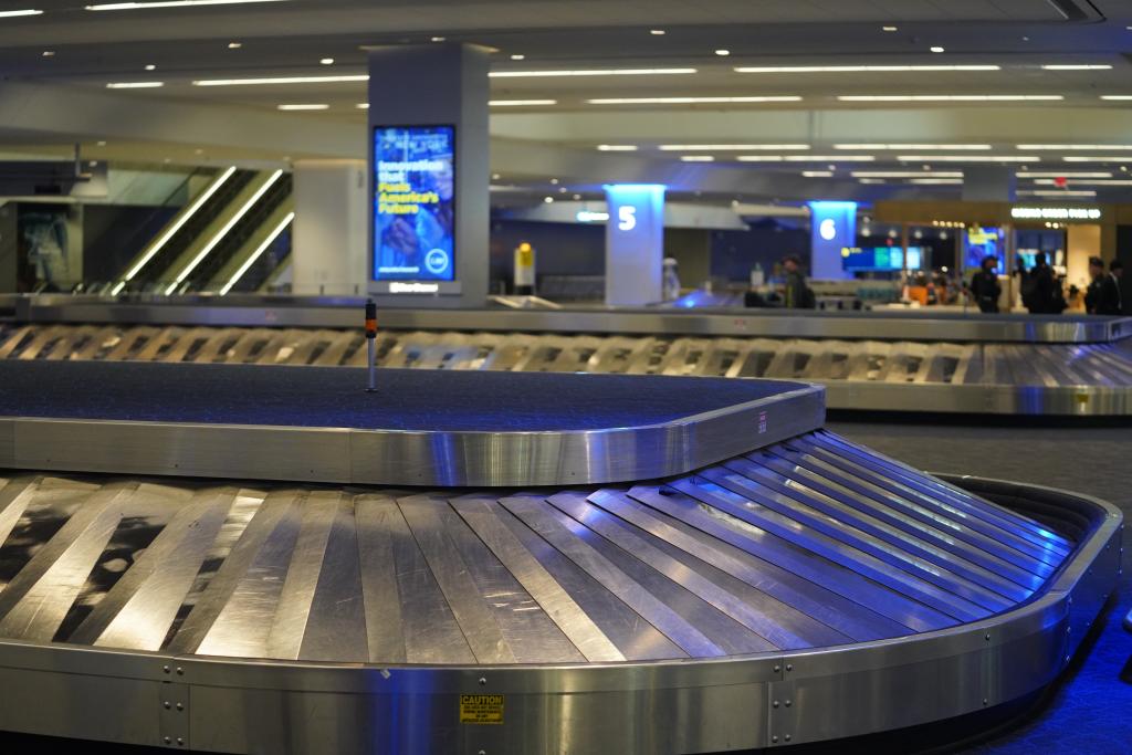 这是3月23日在美国纽约拉瓜迪亚机场拍摄的到达大厅。新华社记者张凤国摄