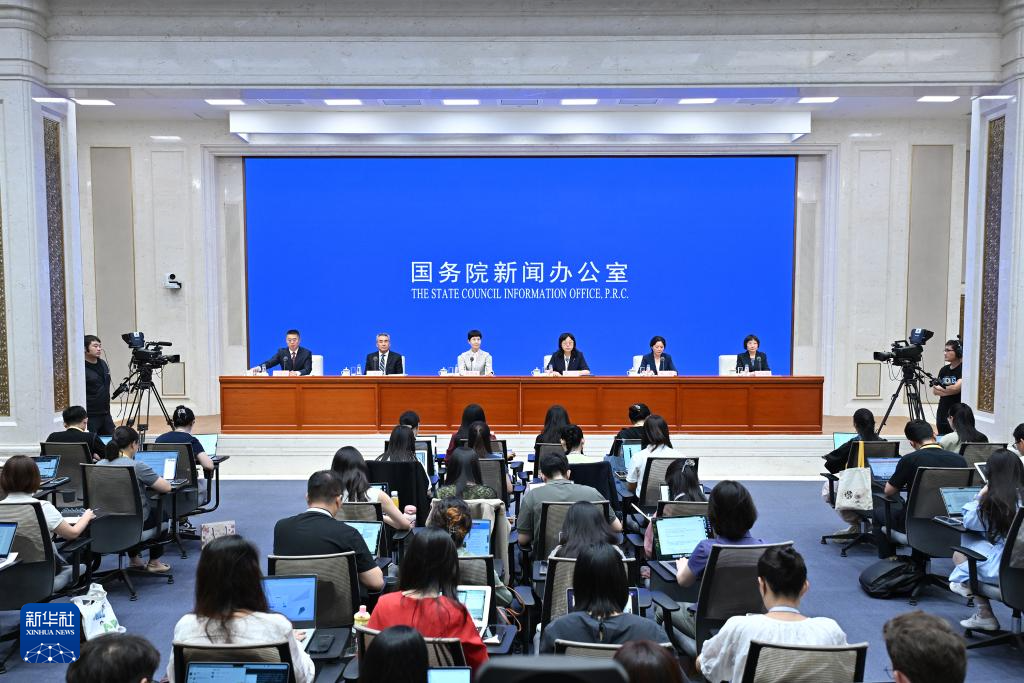 7月30日,国务院新闻办公室在北京举行新闻发布会,国家卫生健康委副主任郭燕红和财政部社会保障司司长郭阳、国家卫生健康委人口家庭司司长王海东、国家医保局待遇保障司负责人刘娟、全国总工会女职工部部长刘红梅介绍育儿补贴制度及生育支持措施有关情况,并答记者问。新华社记者 李鑫 摄