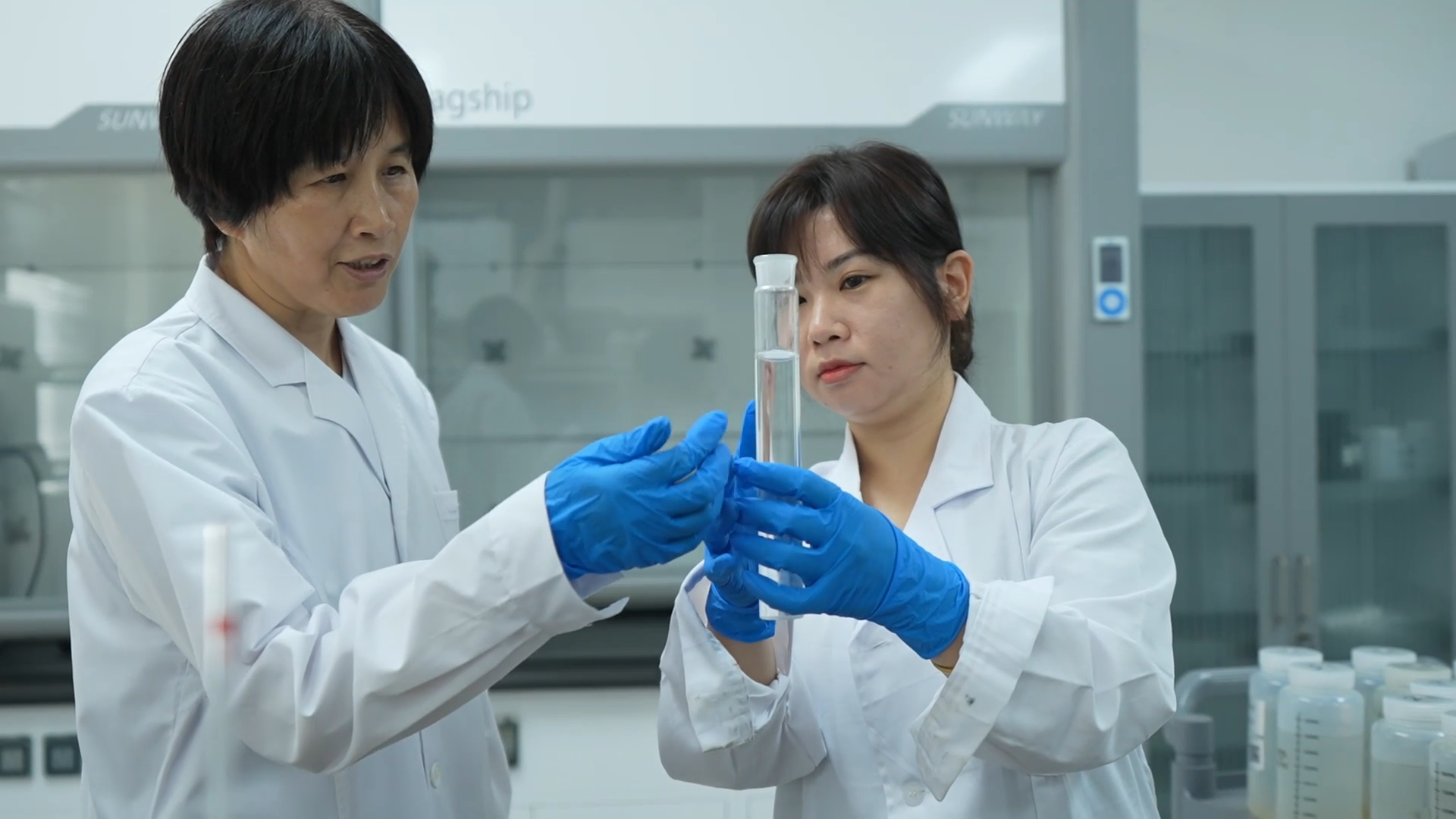 回到实验室,水样排成长龙,刘冬梅和同事们紧盯屏幕、做比对,一天下来,胳膊抬不起来,腰像上了锁。