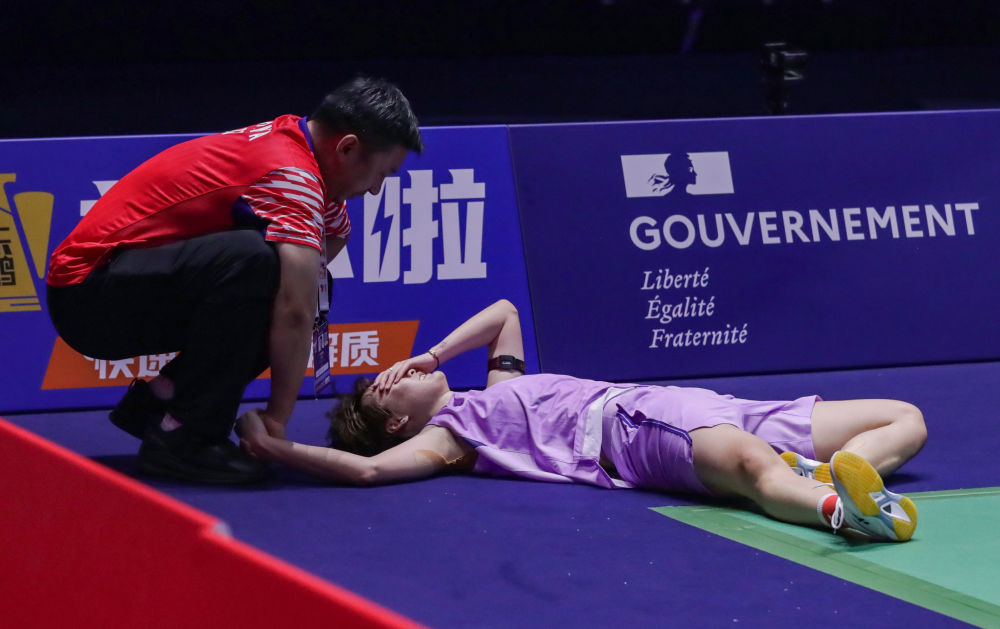 在医生进场与陈雨菲沟通伤情后,陈雨菲重新站了起来。现场观众为她送上支持的掌声。