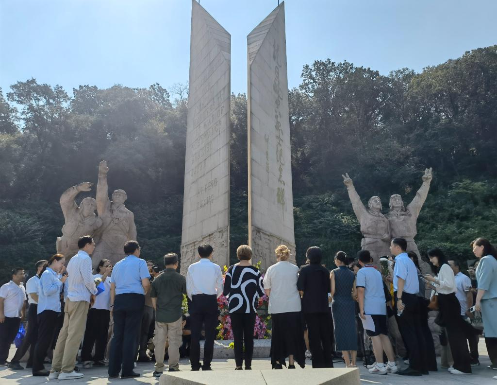 ▲9月5日,美国“飞虎队”指挥官陈纳德将军的外孙女嘉兰惠等中外嘉宾在抗日航空烈士纪念碑前凭吊。新华社记者 邱冰清 摄