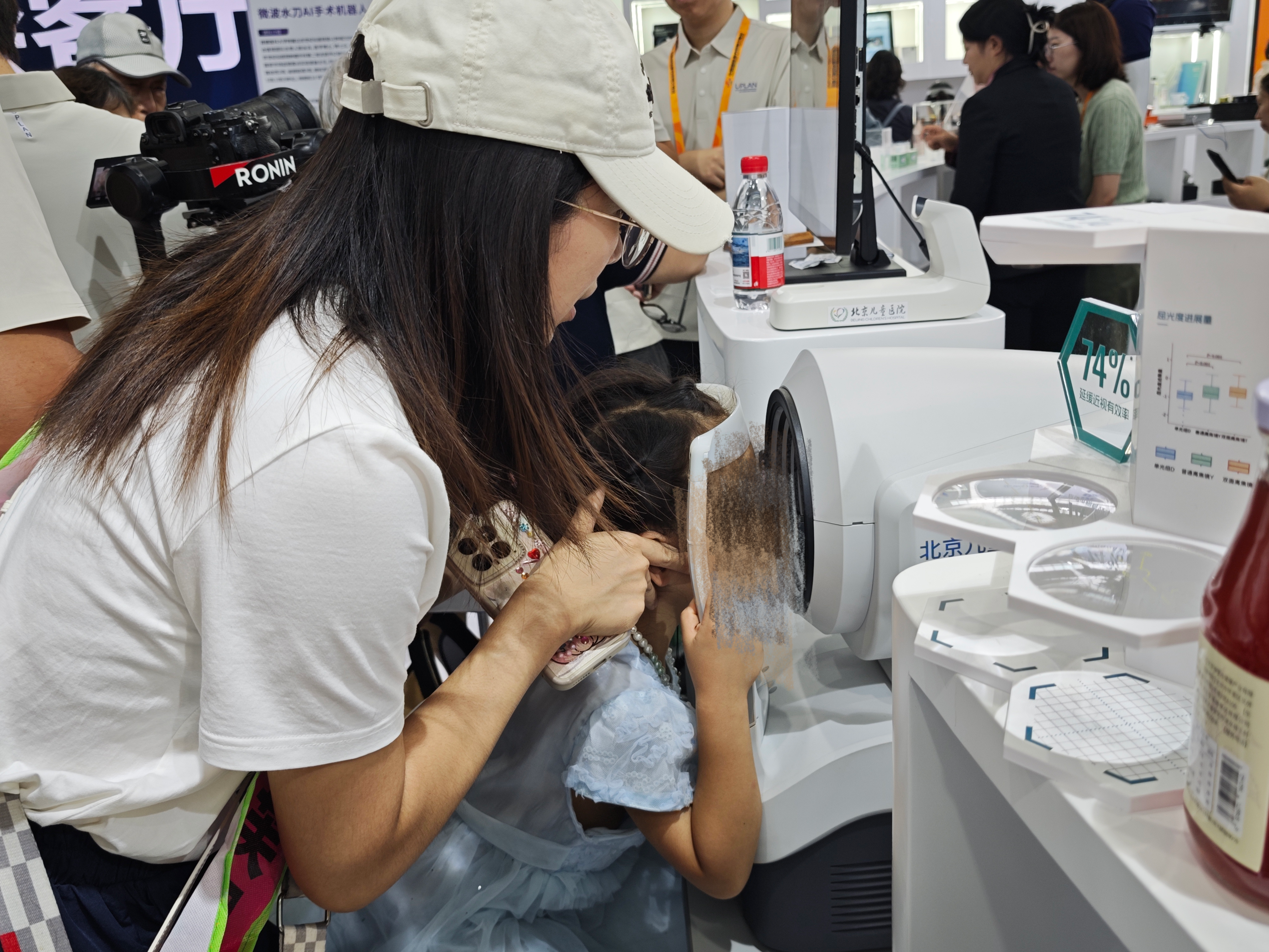 AI儿科医生、5G远程手术机器人、智能眼底照相机、脑机接口……走进位于北京首钢园区2号馆的2025年服贸会健康卫生服务专题展,来自医工融合的中国数智医疗产品,让人更加热切期盼“未来医院”。