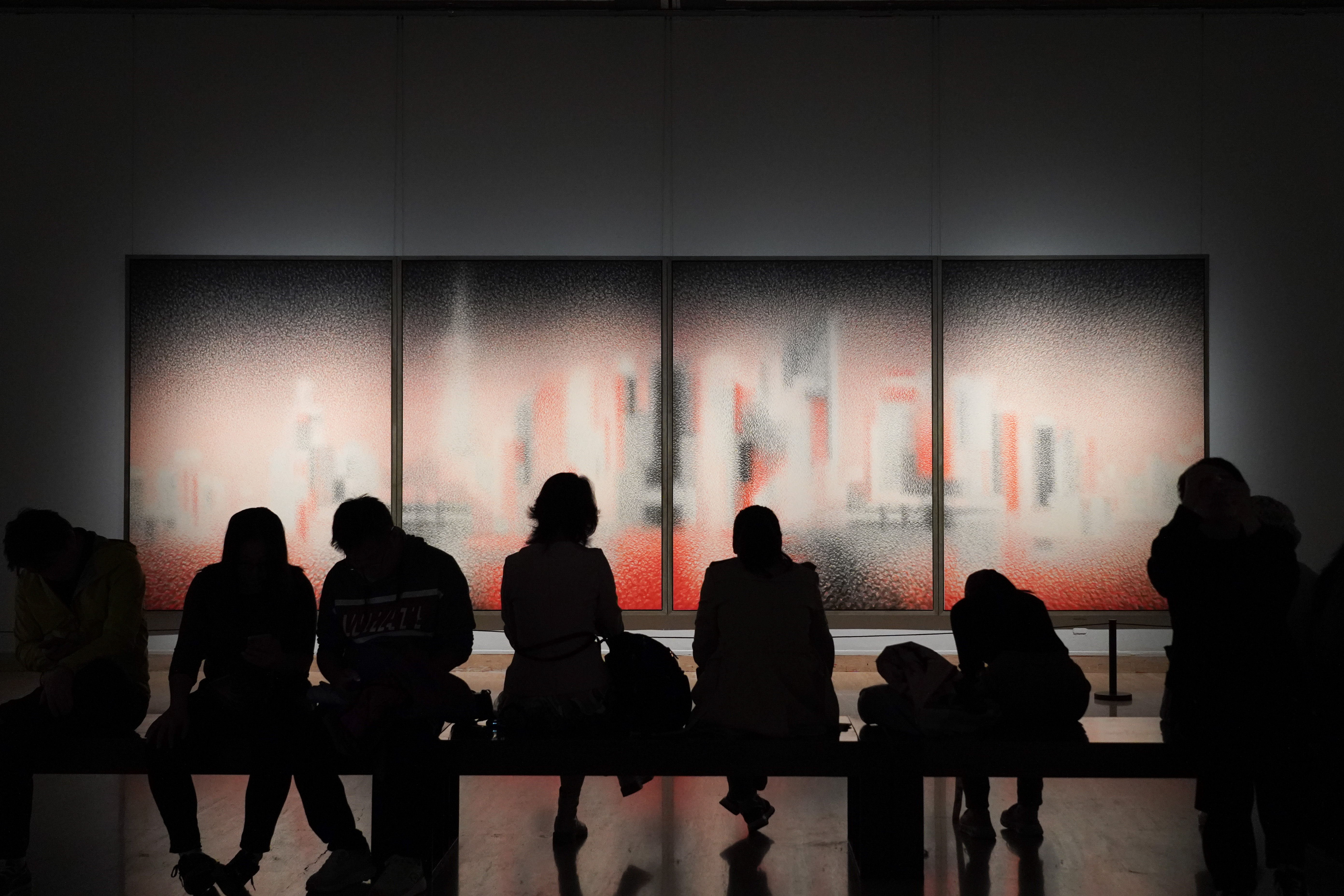 在“贵在意”展览中,除了传统画作,也有承续了写意观念的当代装置、新媒体作品。一幅当代艺术家杨泳梁的“数字山水”巨幅动态影像作品将宋代山水画和现代都市夜景相融,吸引不少观众驻足。