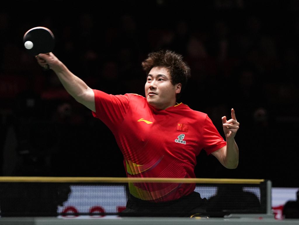 12月6日,梁靖崑在比赛中回球。新华社记者 王曦 摄