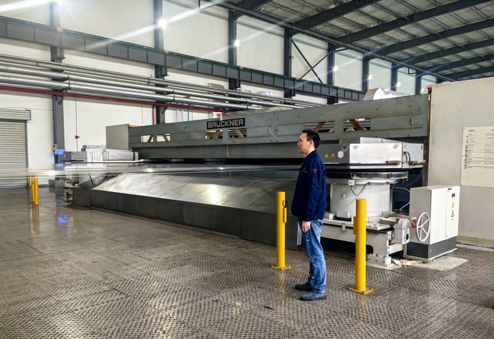 在厂区走访,超过1万平方米的车间内仅有10多名工人,智能生产线高速运转,薄膜产品持续产出。与此同时,部分生产设备正在停工检修,车间负责人介绍说,“这批设备按要求定期检修,周期约为13至15天。”