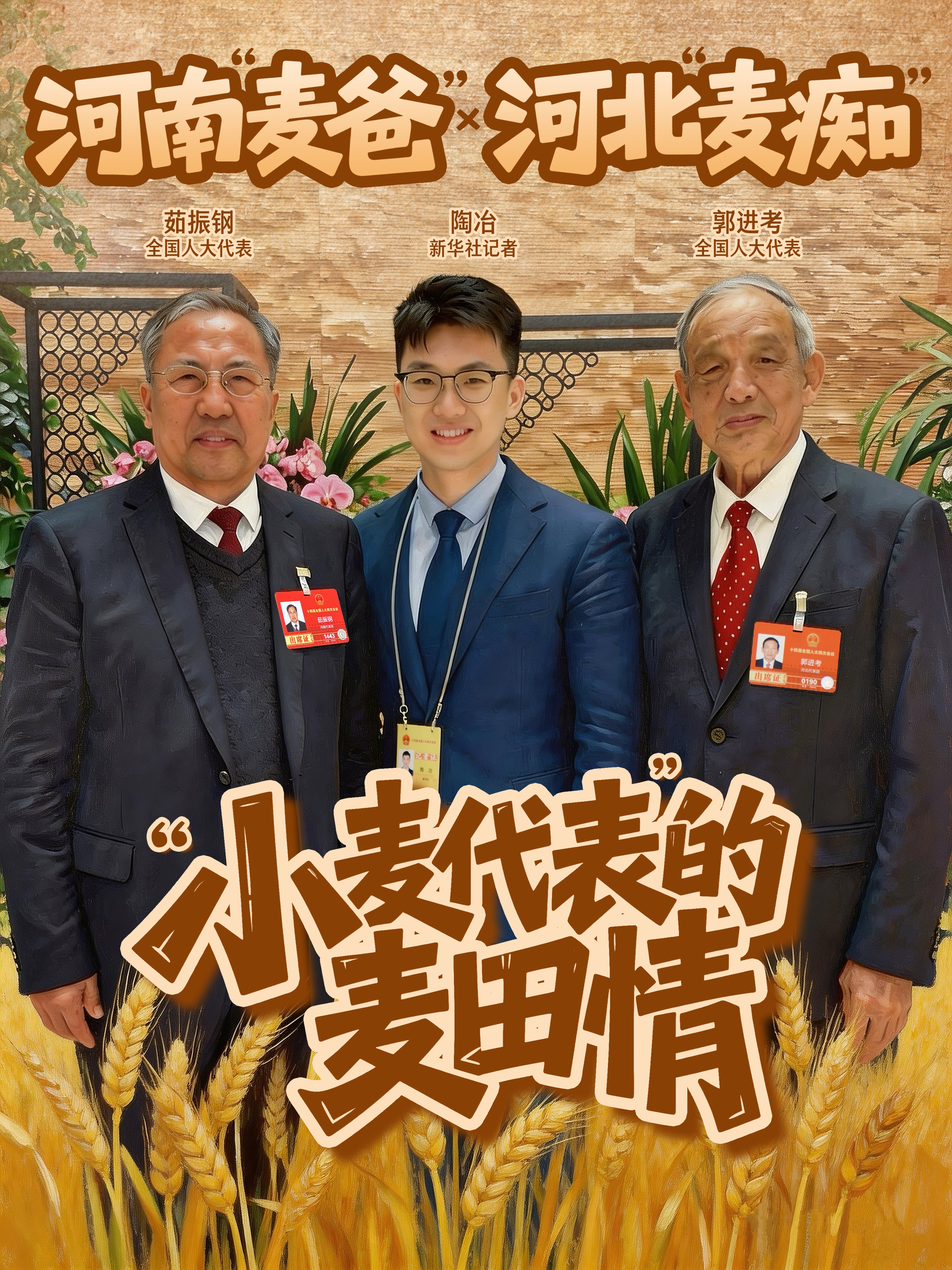 2026年全国两会,全国人大代表、河北省石家庄市农林科学研究院名誉院长郭进考和全国人大代表、河南科技学院小麦研究中心教授茹振钢又见面了。两位来自农业一线,扎根田野、深耕育种,今年再次相遇,按照约定,他们交换了新培育的小麦种子。通过跨区域协同育种,培育出产量更高、适应性更广、抗逆性更强的小麦新品种。