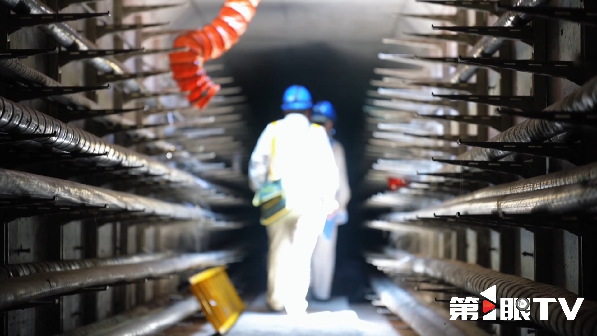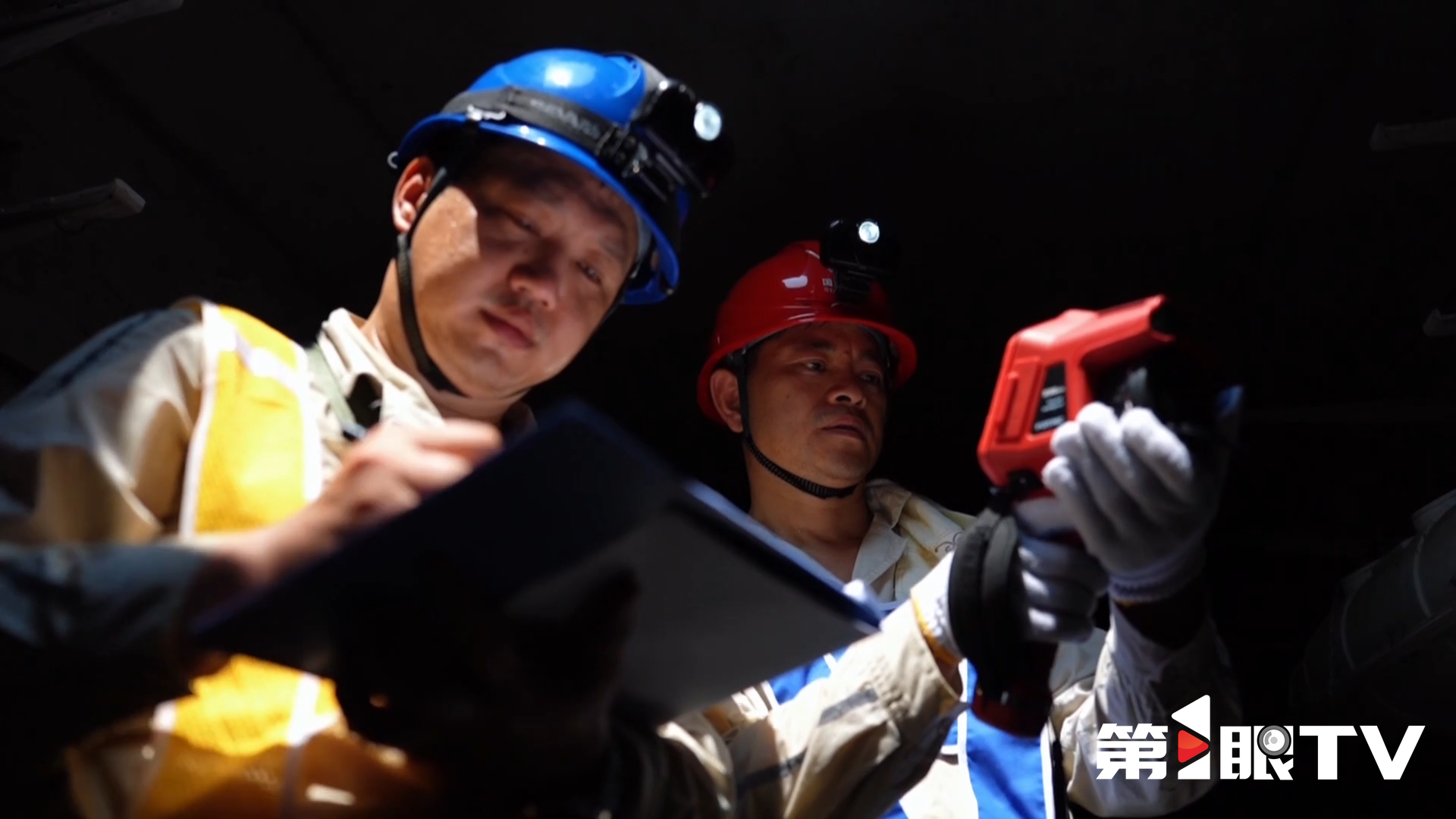 这是电力巡查中的一幕。电缆班班长吴勇和同事架好梯子,下到3米深的隧道。按照计划,他们要检查维护1公里长的地下电缆。高温天气下,地下隧道里闷热难耐。