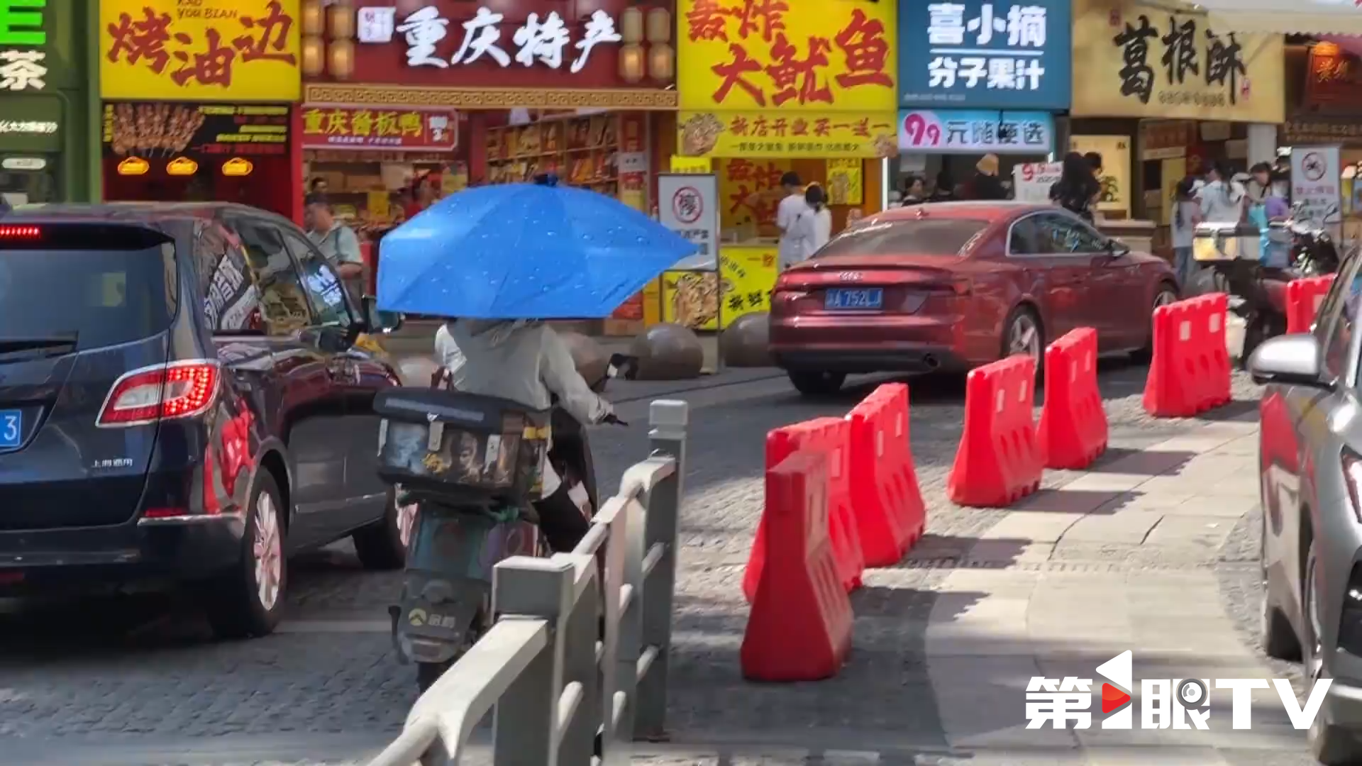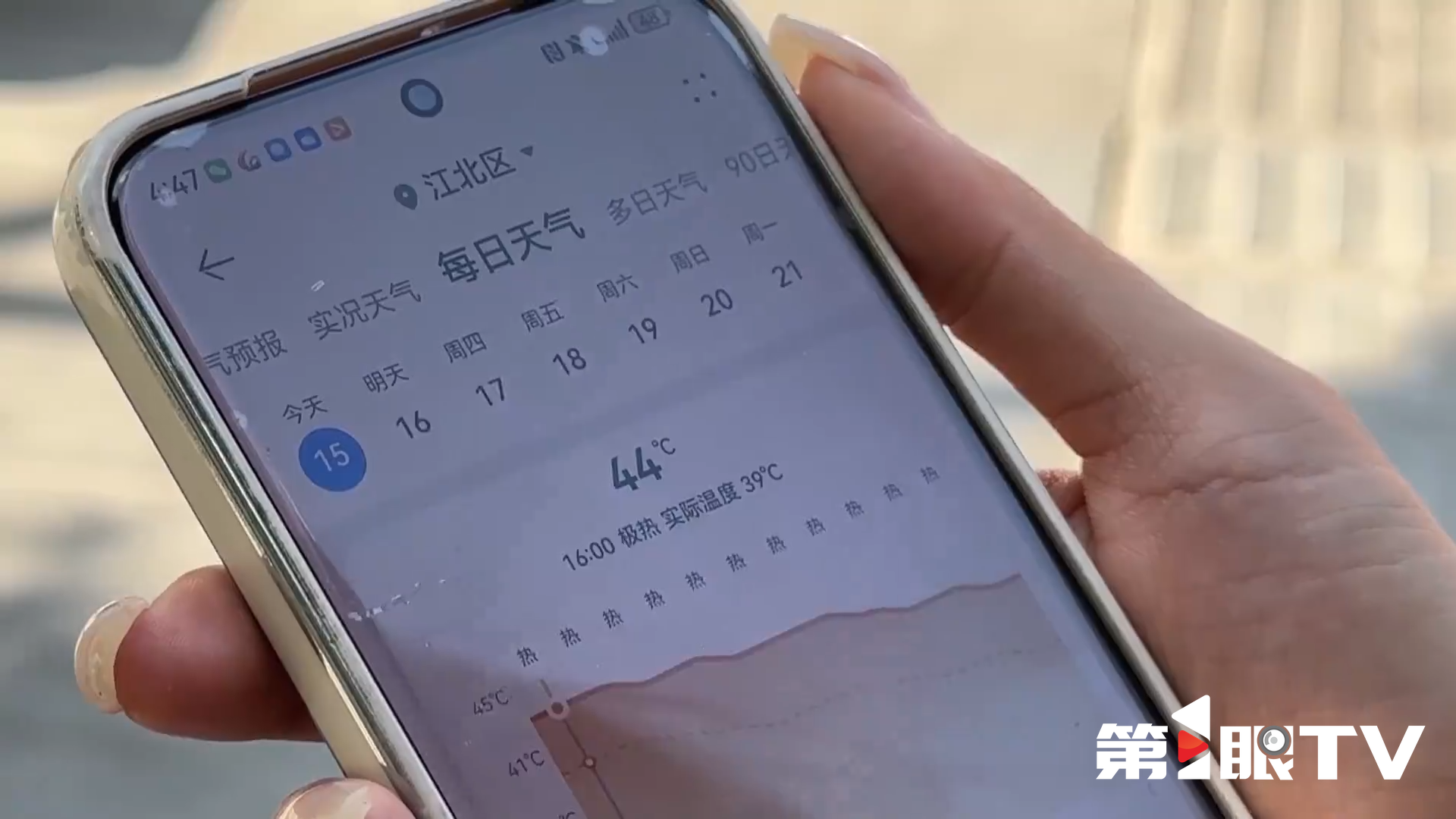 今天,重庆发布了今年首个高温红色预警,第1眼TV记者李科冀来到观音桥,此时实时温度是39℃,体感温度是44℃。记者在现场看到很多外卖骑手依然顶着烈日在配送,希望大家在户外工作时一定要注意防暑,及时补水。