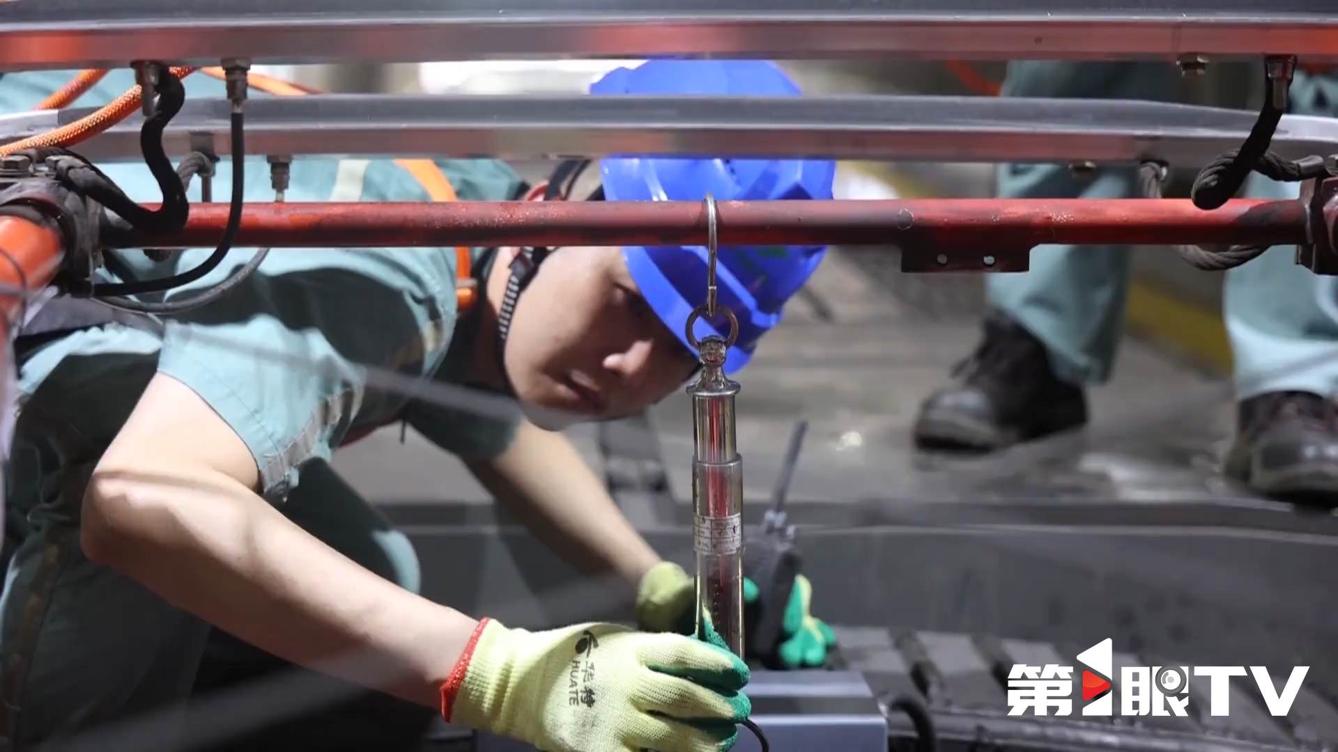 列车如同一个高负荷运转的精密生命体,要通过全面体检与修复,才能确保运行安全可靠。高温天气下,车顶这些电力设备运转的压力不小。廖缙宇和同事们一会儿蹲、一会儿站,仔细测量设备磨损和螺栓紧固程度。趁着线网运行的平峰时段,大家必须完成六节车厢所有的检修任务,保障晚高峰到来前,列车顺利上线运行。