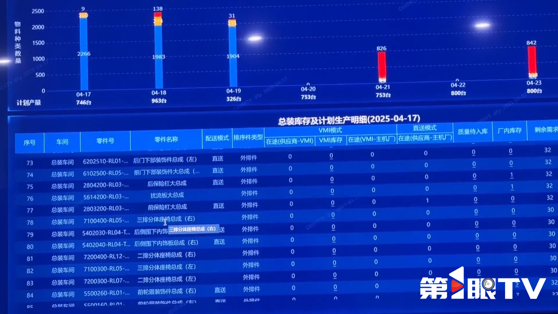 智能网联新能源汽车产业链分为上、中、下游三个环节,生产一辆车,需要10000多个零部件,由分布在各个地区的多级供应商生产和集成,任何一个细小零部件缺货,都不能组装成一辆完整汽车。记者在产业大脑上看到,所有所需零部件的种类和数量,每分钟都在自动更新,如果有差缺件,“产业大脑”就会发出预警。