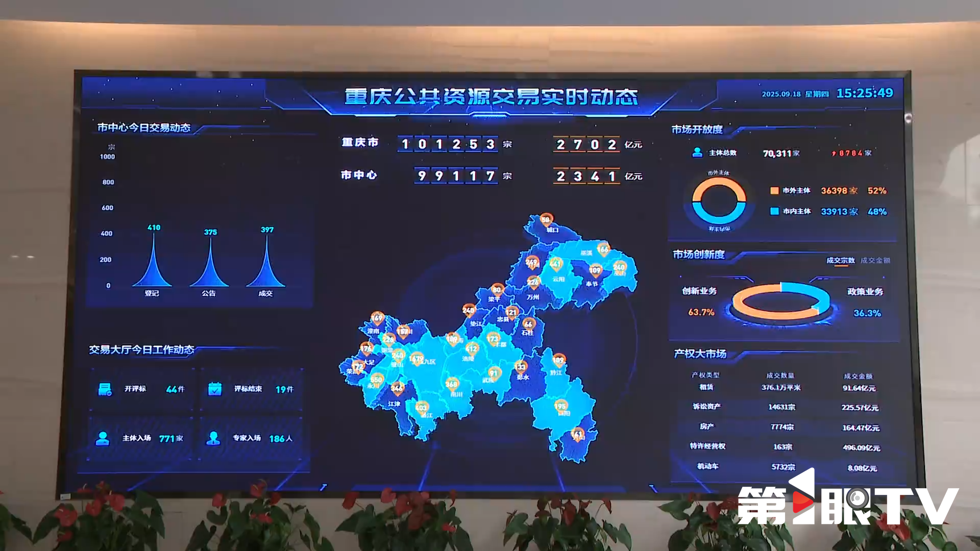 依托联交所集团,重庆整合7个市级交易平台,共建21个区县交易平台,将全市“碎片化”的市场资源逐步汇聚成“集约高效”的市场体系,交易范围已涵盖8大类交易资源、30多项交易品种,成为全国交易品类最多的综合性资源要素交易市场之一。