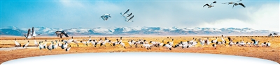 长江源地区分布着大面积的湿地,这些天然湿地为黑颈鹤的繁衍生息提供了良好环境。