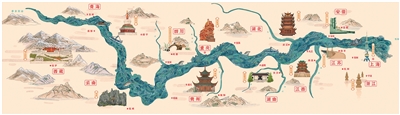 2025长江文明论坛展示的“跟着非遗游长江”非遗旅游地图(局部)。