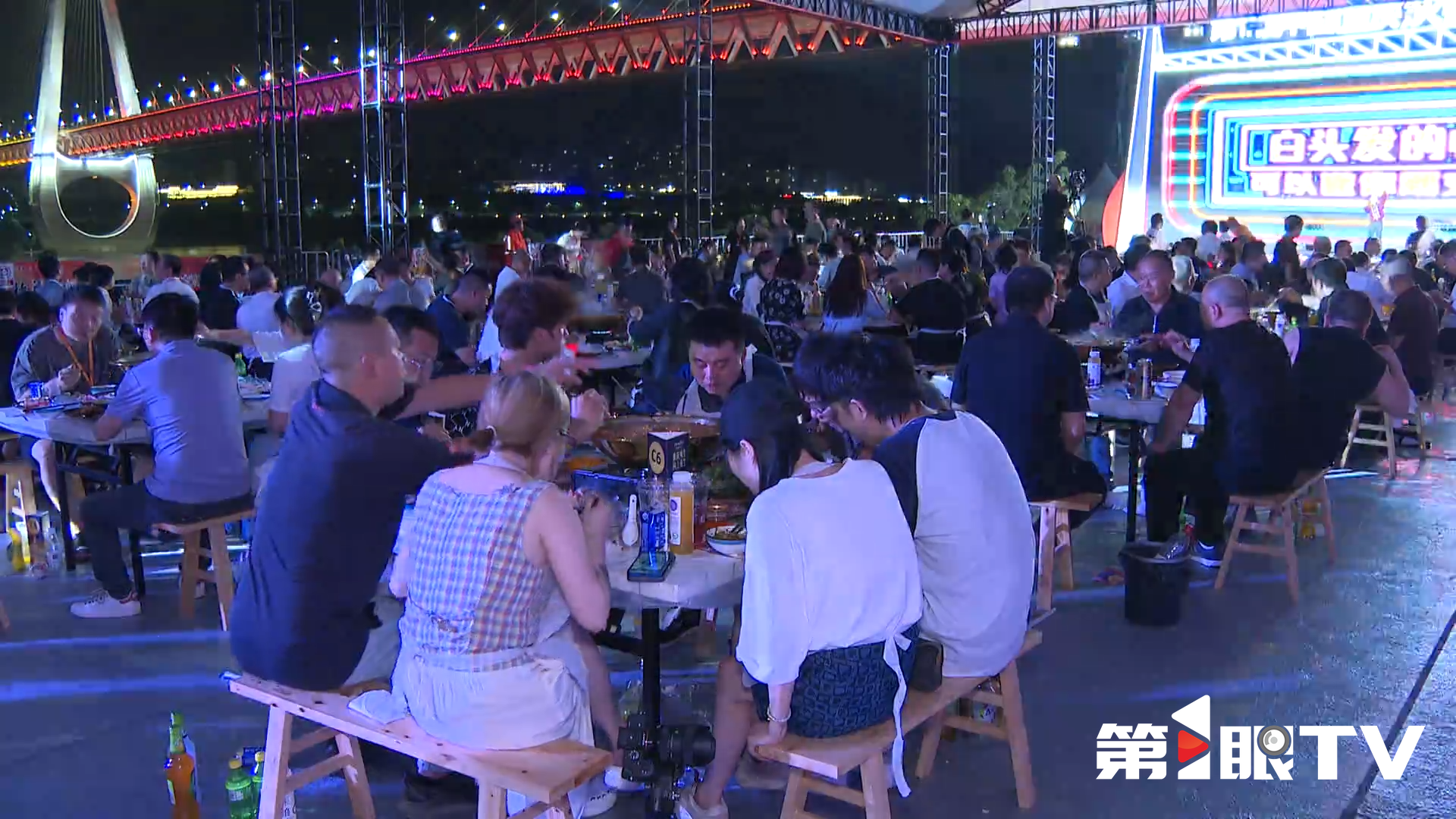 9月28日晚,第17届中国(重庆)火锅美食文化节在大渡口白居寺长江大桥观景平台开幕。活动现场人头攒动,长达1.2公里的江岸火锅宴,数百张火锅桌整齐铺开,火锅的麻辣鲜香和江水的清凉交织,勾勒出山城独特的夜景图。