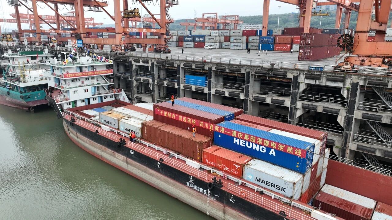 当天,在重庆江津珞璜港集装箱码头,两艘千吨级集装箱货船离港启航。它们装载着36标箱复合材料和123标箱矿石,分别发往万州新田港和云南水富港。与此同时,在涪陵白涛港和开州港,多条试点航线同步启运,标志着重庆“千里轻舟”货运班轮正式开行。